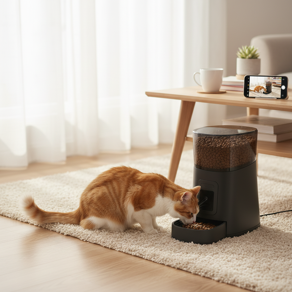 Programmez jusqu'à 10 repas quotidiens et restez connecté grâce à la caméra HD. Votre animal heureux, vous rassuré, partout, tout le temps.